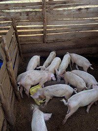 Um mehr Einkommen zu generieren, hat Mityana Charity ein großes Schweine-Projekt inklusive lokaler Verkaufsstelle für das gekochte Schweinefleisch finanziert.
